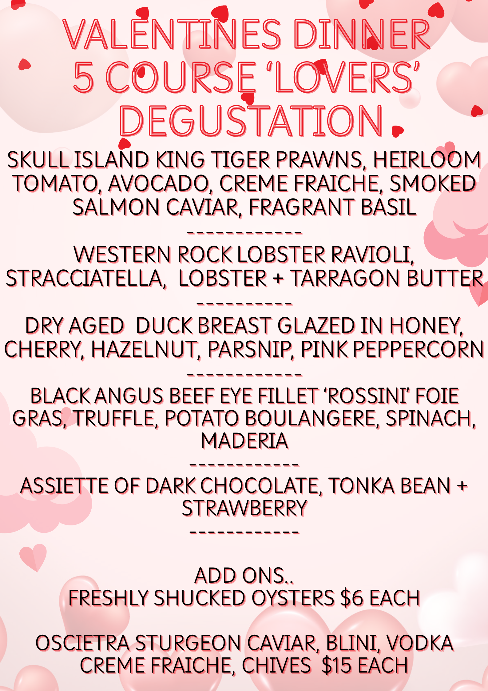 SPOIL YOUR LOVE WITH A DECADENT AND DELICIOUS 5 COURSE LOVERS DEGUSTATION INCLUDING A CHAMPAGNE COCKTAIL ON ARRIVAL